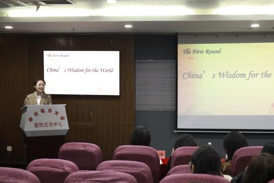 参赛选手们表达流畅、观点新颖、内容丰富,演讲内容紧扣主题,从多方面阐述了中国智慧对世界的贡献,深刻论述了作为新时代的青年应该肩负的责任和使命,在所有选手展示完毕后,陈蓓老师作为评委代表上台对本次比赛作出点评及总结。她赞叹了选手们昂扬自信的精神风貌,并鼓励同学们努力提升英语语言应用能力,用语言架起走向国际、走向世界的桥梁。