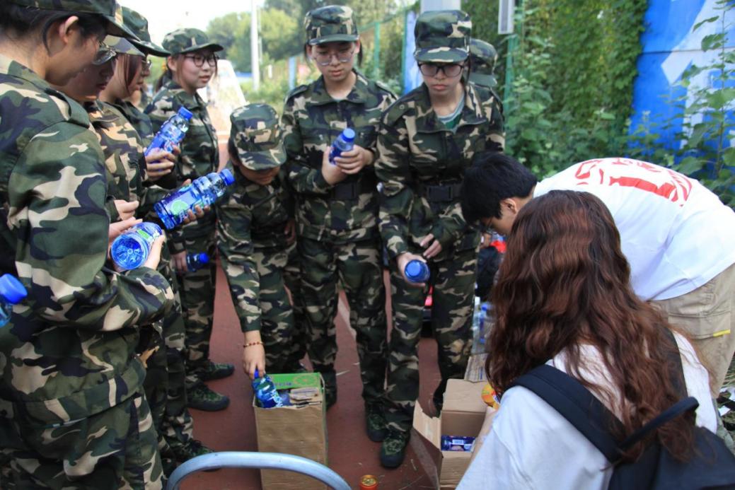 康建刚与马冬多次强调叮嘱同学们要时刻注意自身身体状况,如有不适要立即就医。也鼓励大家坚定信念,在军训中磨练意志,更好地迎接将来大学生活中的挑战。此外,学院还为几天来辛苦军训的同学们准备了饮品,希望能在燥热天气中带给他们一丝清凉,也带给他们来自外国语学院大家庭的关切与温暖。