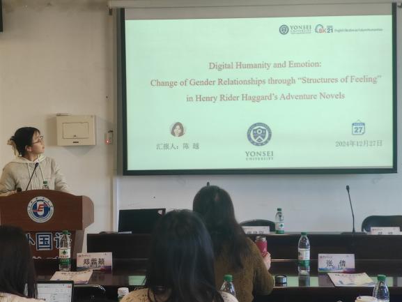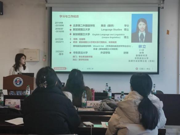接着,来自世界各地的优秀青年学者分享了自己的研究成果。来自韩国延世大学陈越博士的讲座“数字人文与情感:哈葛德冒险小说中的情感结构与性别关系特征变化”,以AI技术建立数据库对文学文本情感主题进行了研究;来自中国人民大学严天欣博士的讲座“老年人门诊医患互动的言语行为分析”,以门诊对话作为文本,分析了医患间的的言语行为关系;来自中国人民大学胡茜博士的讲座“瞿秋白翻译实践与思想研究”,对瞿秋白翻译思想顺、信的辩证关系进行了梳理;来自北京师范大学王卉博士的讲座“素养如何落地生根:回归语言知识的意义”,对知识是语言的基础这一论断进行了阐释,并且呼吁建立以知识为基础的课程体系;来自华东政法大学林立博士、博士后的讲座“AI时代下的法律翻译:有效性与前景展望”,以AI技术支撑数据库建设,对法律话语进行了分析和建设;来自加州大学圣克鲁斯分校曹亚晴博士的讲座“Processing Focus Intervention in Mandarin Chinese”,对话语中“没”“不”的功能作用进行了分析。