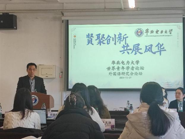 为吸引海外人才,广招天下英才,华北电力大学“贤聚创新、共展风华”第六届世界青年学者论坛暨首届外国语研究分论坛于2024年12月27日下午14:00在主楼C座606顺利举行。论坛由院长助理郑蓉颖主持,学院党委书记郑凯、院长康建刚、副院长刘辉、副院长张倩、副书记马冬出席了论坛。人才处副处长徐岸柳到会表示祝贺。