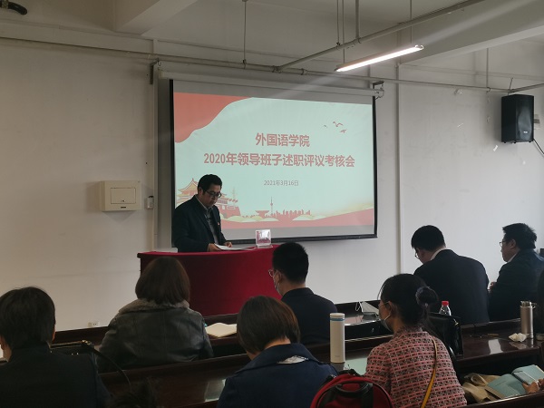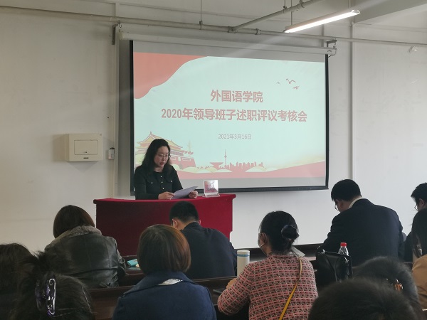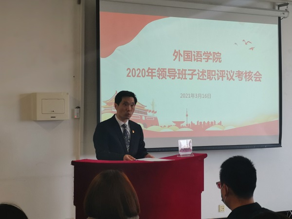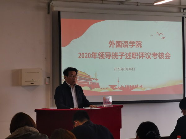 院长康建刚代表学院领导班子作了2020年度工作述职报告,全面总结学院在党建、教学、科研、学科建设、学院管理等方面取得的成绩,并查找差距不足,提出了2021年工作目标和思路。于喜海、康建刚、副院长刘辉、党委副书记马冬依次围绕分管工作及个人履职情况进行述职,总结 2020年度取得的成绩、存在的问题和今后的工作方向。
