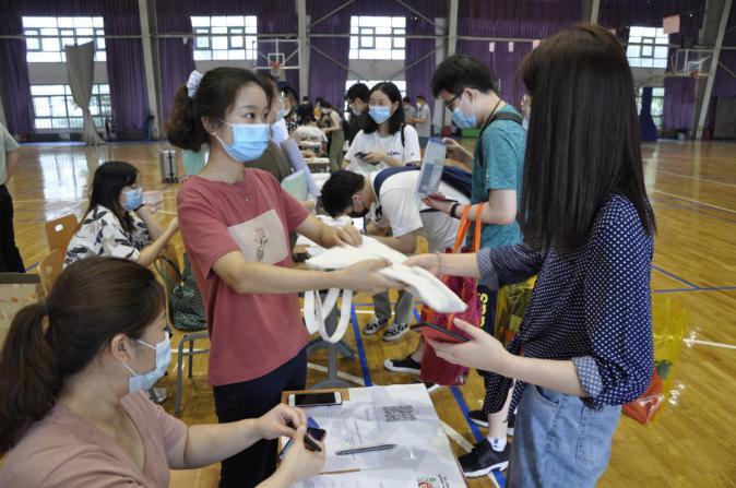 毕业生办理返校手续、领取健康包