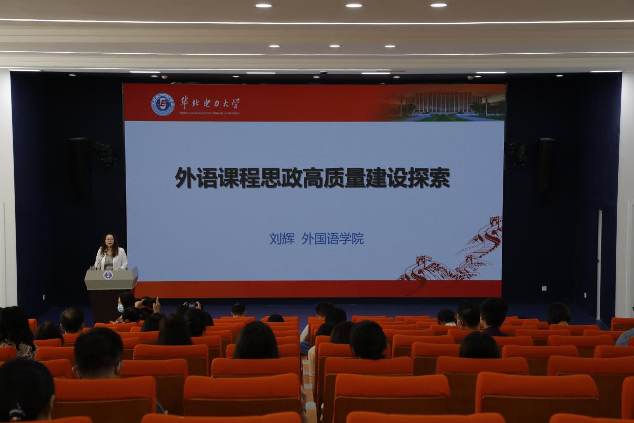 刘辉作了题为《外语课程思政高质量建设探索》的专题报告。报告介绍了外国语学院课程思政示范课建设情况,并以《英国文学》和《通用英语》两门示范课为案例,充分展现了思政元素融入外语教学的实践路径。报告还从建设方案、建设目标、建设举措和预期成果四个维度全面介绍了外国语学院《习近平谈治国理政》多语种版本“三进”教学工作的开展情况。学院将习近平新时代中国特色社会主义思想系统融入听说读写译等核心课程,探索课程思政有效路径,提高向国际社会讲好中国故事的能力,为中国参与全球治理、推动文明互鉴、构建人类命运共同体贡献力量。